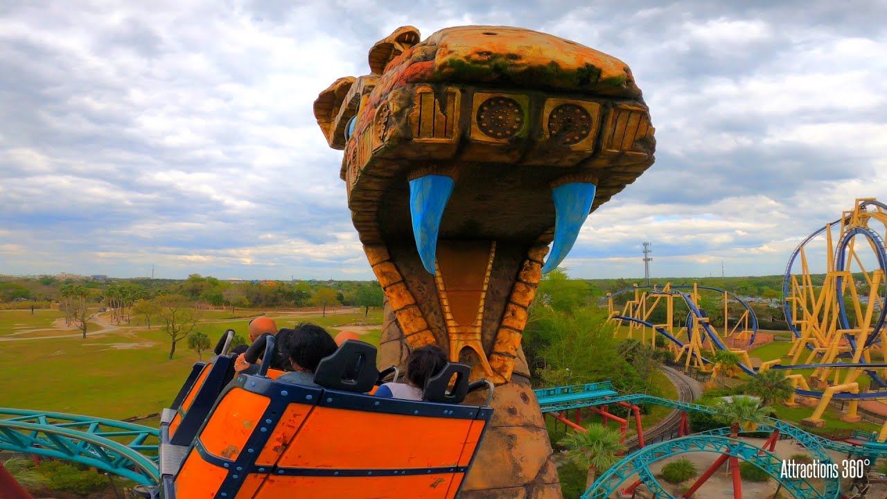 [4K] Cobra's Curse is a Spinning Roller Coaster at Busch Gardens Tampa Bay in Florida.
